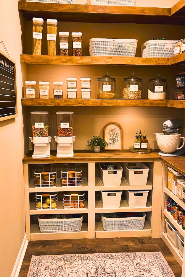 I don’t always feel motivated to organize, but looking at good DIY pantry shelving makes me want to drop everything and fix my pantry immediately.
