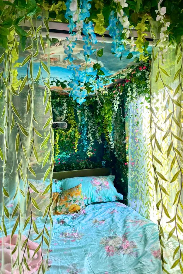 This bed nook instantly grabbed me with its fairy-tale vibe. I like how the soft greens and airy whites instantly set a spring mood.The sheer curtains and vines turn a small corner into a full escape, and the way the light filters through makes it feel extra cozy. Of course, the setup isn’t without trade-offs, dusting all those layers would take some commitment, and I can imagine a cat turning it into their own playground, but that’s part of the charm. Credits go to u/plantbasedmenace