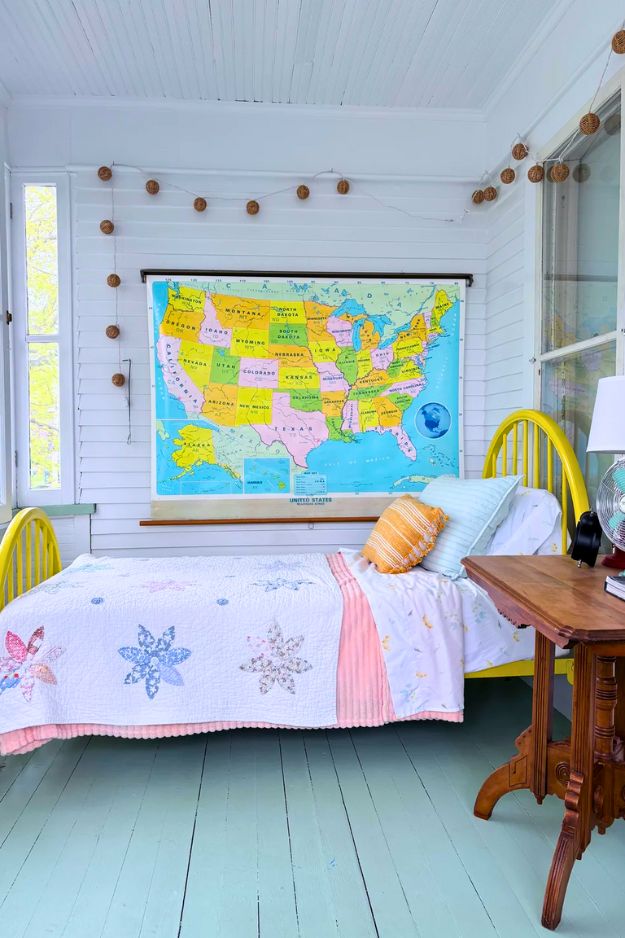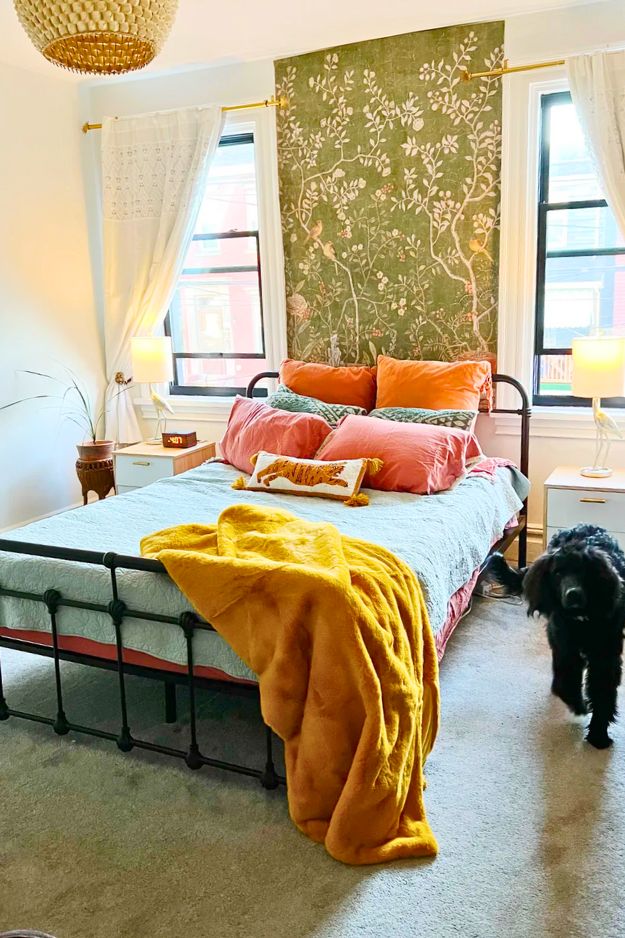 This Pennsylvania bedroom proves that thrifting can give you a designer look. Almost everything here was secondhand, and it all comes together. It’s thrifty but polished, it makes the room look so homey.