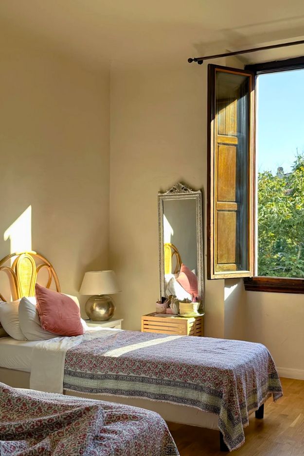 This Florence bedroom looks so peaceful I’d happily spend an afternoon just sitting by that big window.
