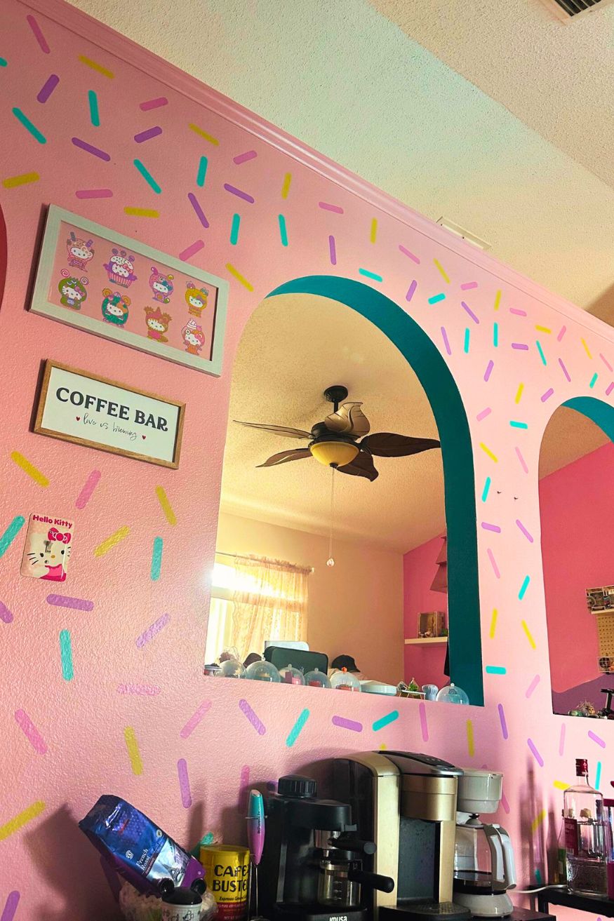 u/itsbarbieparis brings so much joy to his coffee station with his sprinkle wallpaper, the kind of corner that instantly changes your mood the second you walk in. The whole vibe feels Hello Kitty Cafe Bus-adjacent in the best way; it leans into playful chaos while still looking surprisingly tidy and intentional.