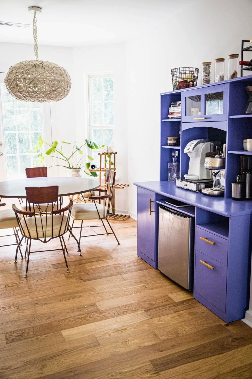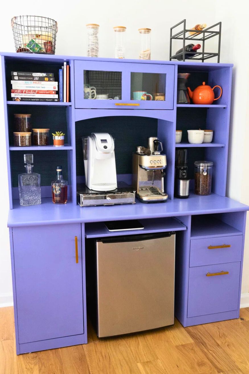 The bold Valspar “Simply Purple” is giving me major “Friends apartment” energy in the best nostalgic way. It’s cute, practical, and honestly looks like it belongs in a cozy everyday nook more than just a seasonal station.