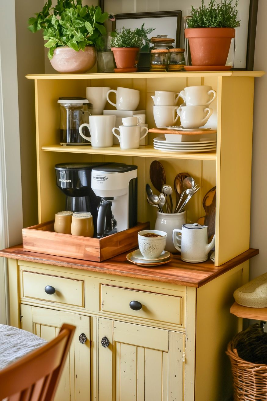 A spring coffee bar is one of those small upgrades that make the whole kitchen feel new. Even if you don’t change a single cabinet or wall color, swapping out mugs, adding a light tray setup, and using a softer spring palette can instantly make your coffee corner look cleaner and more intentional.