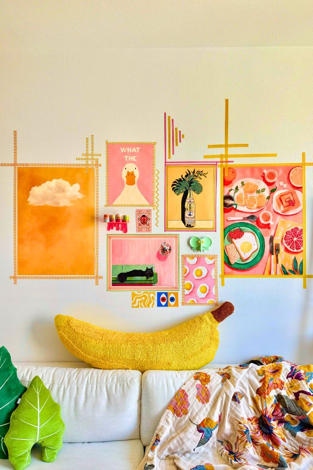 derppityd’s washi-tape gallery wall is such a smart renter hack, with no nails needed, just tape and prints. And it’s really easy to switch things up, you can peel or swap out the art whenever you feel like it. It’s basically a rotating gallery you can change with the seasons, like florals for spring, beachy art for summer, moody prints for fall.