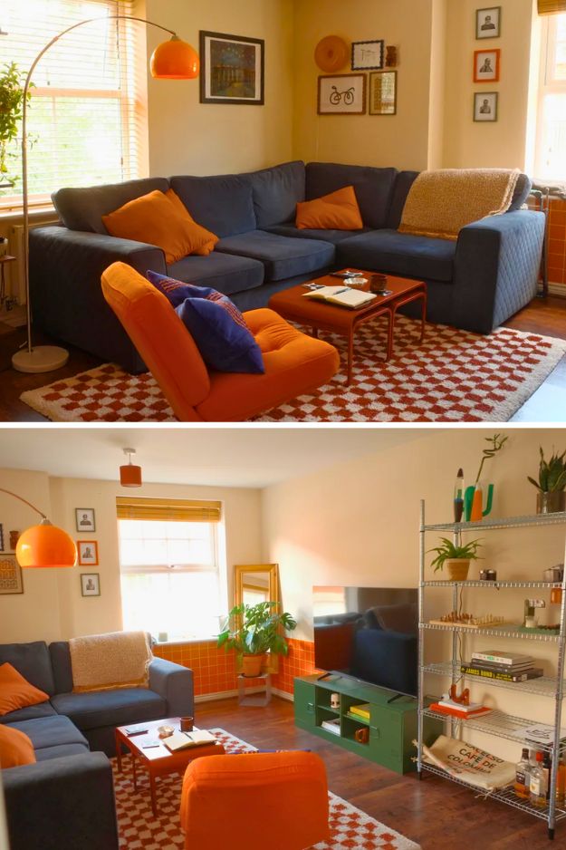 The person who decorated this has exquisite taste, the whole living room feels like it popped straight out of the 70s in the best way. The bold orange tiles, blue sofa, and green TV stand give it this retro energy. It’s playful but well-curated. If I’m nitpicking, I’d ditch the metal shelf next to the TV so the colors and textures can shine even more. By GreenGuy20