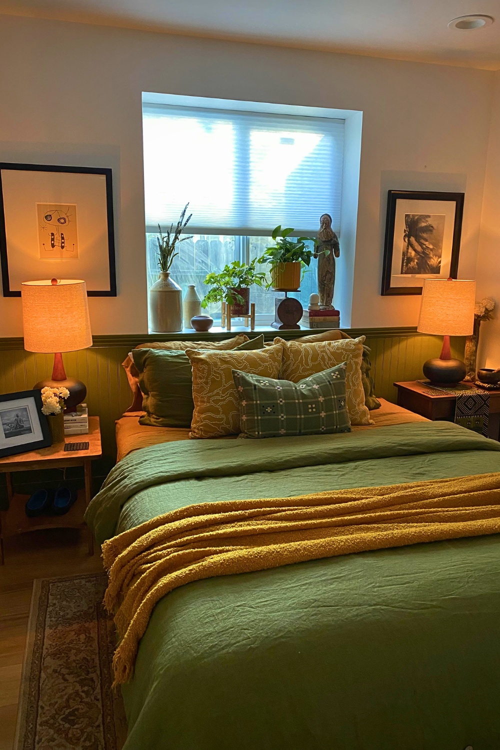 I’m also impressed by how u/Defiant-Scale-3348 layers green and warm neutrals to create a luxury feel. Using texture like this is a brilliant interior hack for a boho-style retreat. Honestly, this kind of setup makes me want to just stay in bed all morning.