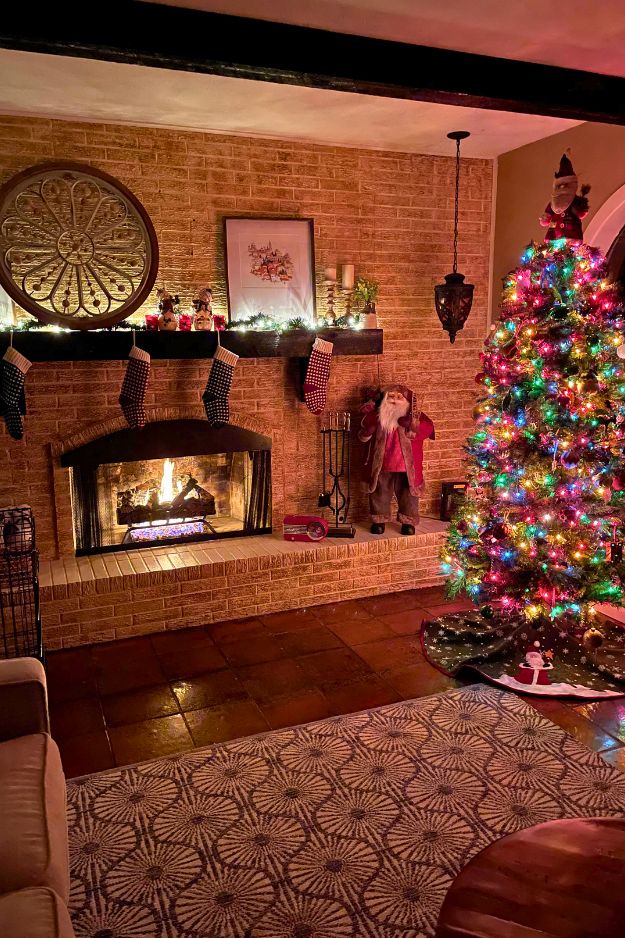 Not every house is lucky enough to have a full brick fireplace wall, and that’s what makes u/Crametap’s den feel so special. It instantly sets the tone for the whole room, giving it that grounded, timeless warmth you can’t fake with decor alone. Pair that with the multicolored lights on the tree and it’s basically the kind of spot where you want to hibernate all season.