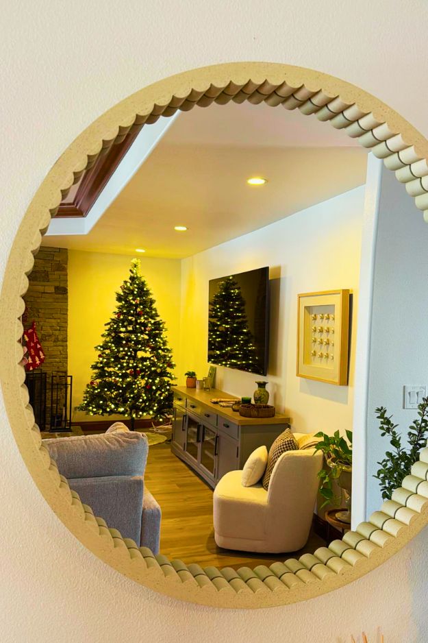This is such a creative way to capture your living room. The mirror makes it feel like you’re peeking into another space, and the Christmas tree glow bounces back beautifully. It’s polished but still has that cozy vibe that makes you want to sit down and stay awhile. By chilledblue22
