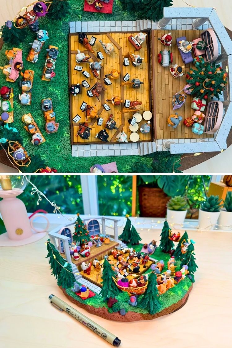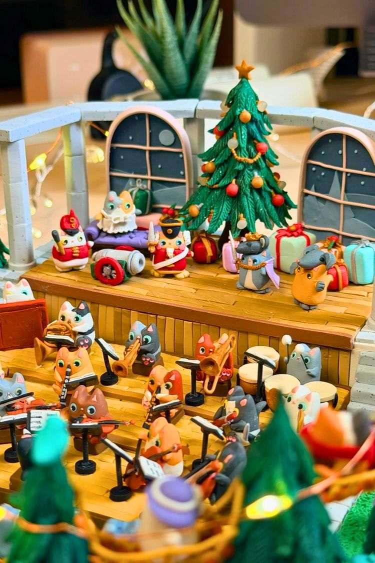 And then you see the photo with the pen and realize how impossibly small all of this is, yet every cat still has its own vibe. Even the orchestra feels alive, like they’re genuinely trying to hit their cues. It’s pure winter magic in miniature.