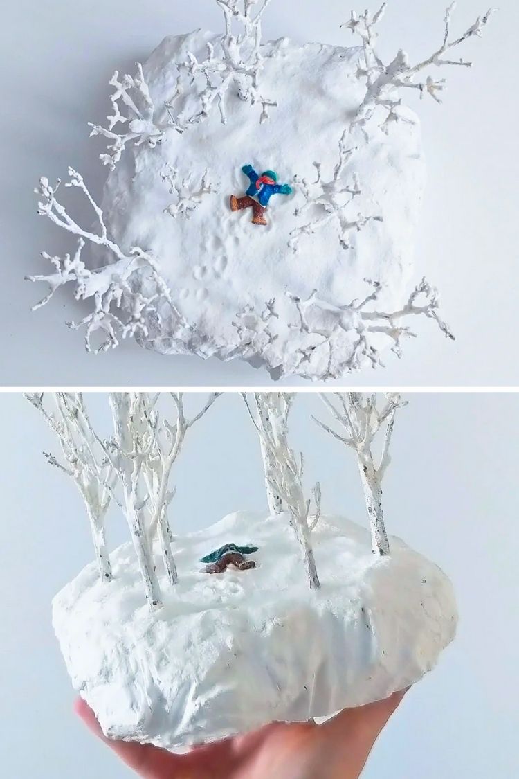 This little winter diorama by zdmit is so sweet it almost feels like a memory instead of a craft project. The tiny figure has this pure, content expression that makes the whole snowy scene feel calm and a bit magical. I love how the artist used baking soda for the snow; it gives everything a soft, powdery texture that looks freshly fallen.