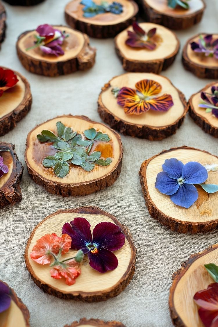 These pressed flowers on wood slices are so pretty, I kept staring just to take in all the tiny details. And honestly, each one looks like it could be a stunning coaster without even trying. It has that effortless, nature-loving vibe that makes you want to grab a few blooms from the yard and make your own version on a lazy afternoon.