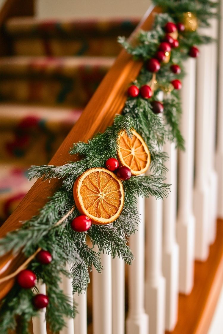 Here’s another variation with berries, and it leans even more into that woodland-Christmas vibe. The dried oranges pop against the greens, but the little bursts of red are what make it feel extra cheerful, almost like you caught a snapshot of winter fruit tucked into the branches.