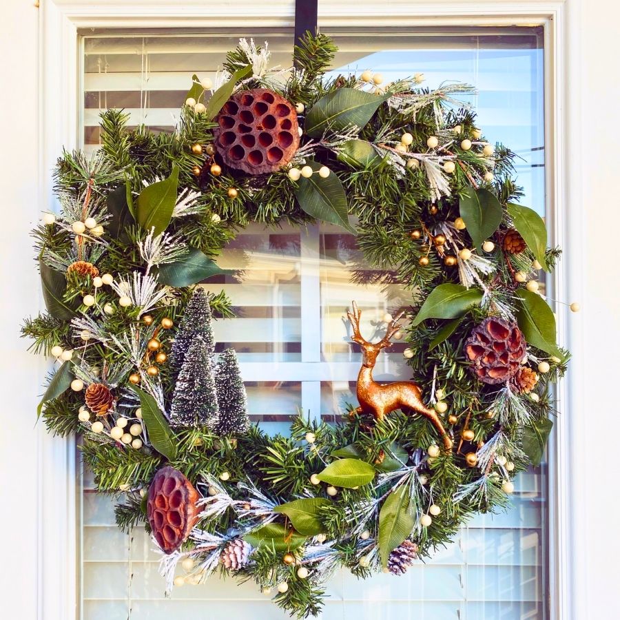 The thing that pulled me into u/biffladiff’s wreath right away is how effortlessly it bridges the holiday season and the calmer feeling of January. The frosted greenery, soft white accents, and those tiny gold deer give it this quiet woodland mood that still feels fresh after the holidays.