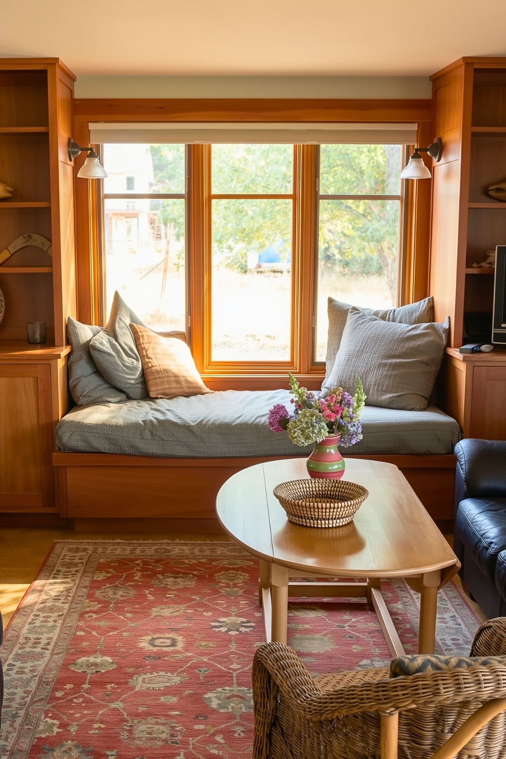 After seeing so many loft and corner setups, I couldn’t stop thinking about how powerful a simple window bench can be. This rustic cabin interior uses a built-in reading nook framed by shelves, which instantly solves the problem of clutter while making books feel like part of the design. I love how this idea turns unused wall space into something warm and practical, especially when all you want is a quiet place to read and watch the trees sway outside.