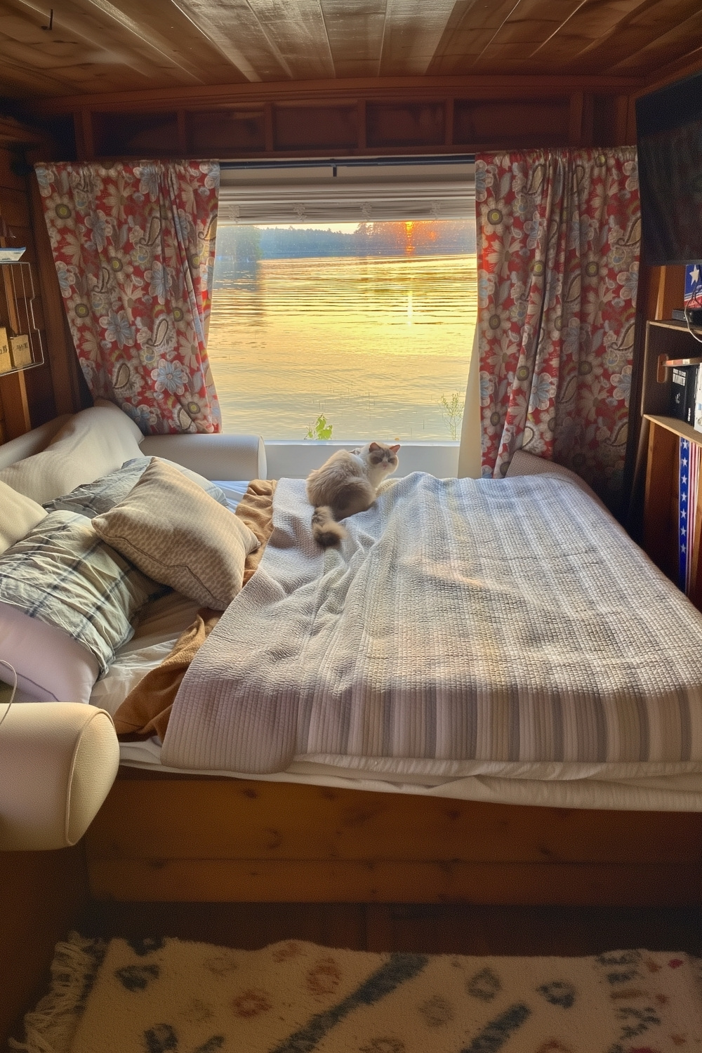 Sometimes the best place to read is right in the bedroom, and this nook uses a gorgeous lake view as part of its design. With all that natural light and a soft bed, u/lukewarm_thots really captured that peaceful water-side feeling, plus the cat adds so much warmth. This is a great cozy cabin idea for anyone who wants to read a chapter at sunrise and another when the sun goes down.