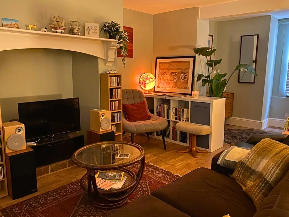 I also fell in love with a nook that uses color so well – the sage green walls and warm lighting make everything feel so peaceful. That glowing globe lamp is such a nice touch, and I love that u/atcq4eva created a corner that actually works for real life, with music and extra lamps for reading after a long day. If you need some simple interior design ideas for a small room, this proves that your personality matters way more than the square footage.