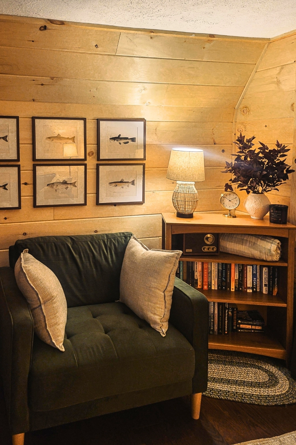 If you don’t have a whole room to work with, I admire how this small corner uses just one comfortable chair and some thoughtful art to feel complete. u/DocBarbie21 should be proud of this style, using fish artwork and specific textures to tell a personal story. I’d definitely recommend a setup like this if you’re looking for simple interior design ideas for a rustic reading nook.