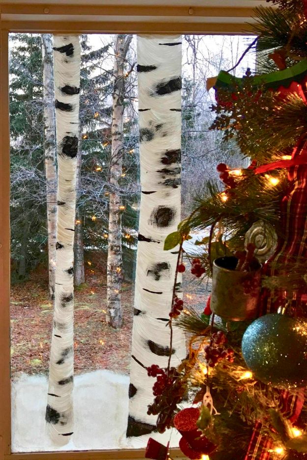 kahleesky’s birch tree window painting is one of those projects that tricks your eyes in the best way. At first glance, it looks like real trees outside, but they’re actually hand-painted directly onto the glass. She used acrylic paint with painter’s tape for clean edges, taking inspiration from the actual birch trees in her yard. Removal is simple, she’ll just scrape it off with a razor.