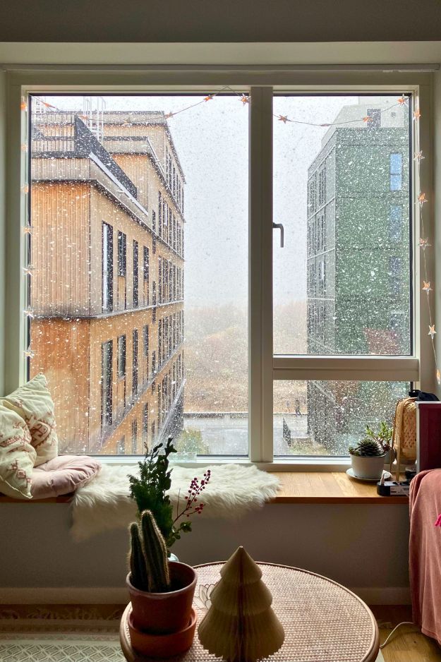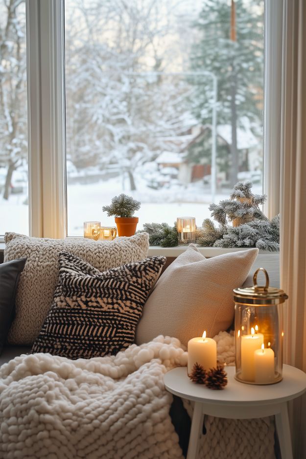 I’m also in the city, and my windows just don’t frame the world in the same way this cozy window seat does. Still, seeing setups like this makes me think a warm lamp, a good chair, and maybe a few candles could help fake that cozy vibe even if the view outside isn’t picture-perfect.
