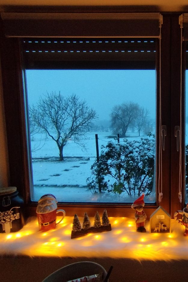 Looking at this Christmas window in Germany, I totally get the motorbike obsession after spotting that piggy bank on the sill, saving for rides even in the middle of a snowy scene. What I love most is how simple it feels to pull off: just layering a soft fur blanket with hidden warm lights underneath to mimic snow. The glow looks so natural against the real snowfall outside, and it proves you don’t need a lot of decor to make your window feel magical.