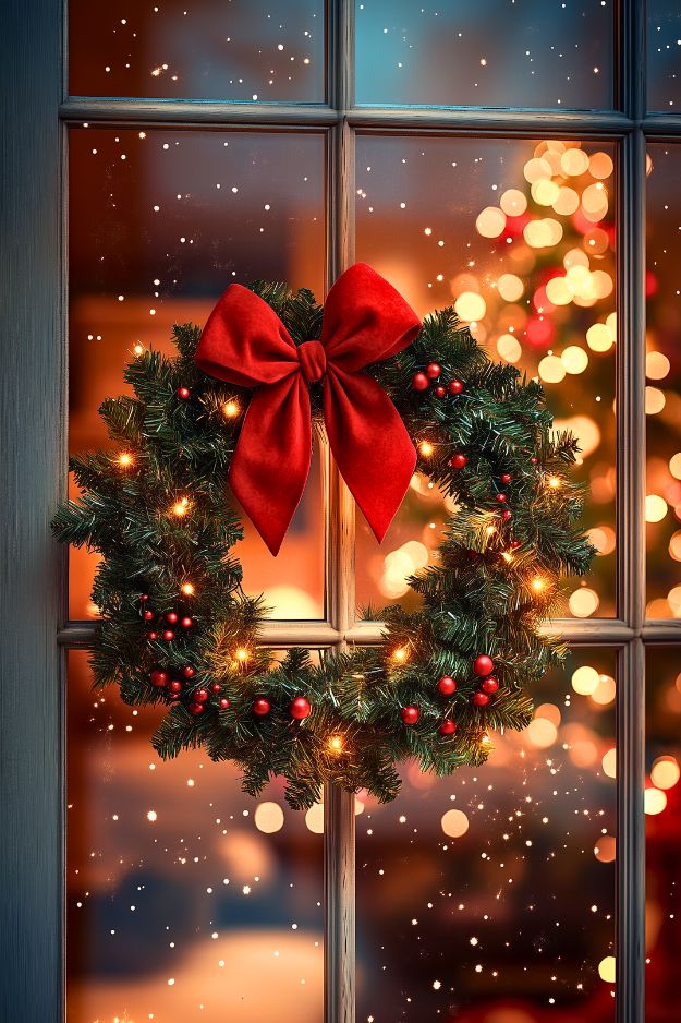 Of course, a Christmas tradition wouldn’t be complete without an evergreen wreath. Hanging one in the window instantly makes the space feel warmer and more inviting, like a little signal of holiday cheer glowing from the outside in. It’s such a simple detail, but it’s exactly what turns a pretty room into a cozy one.