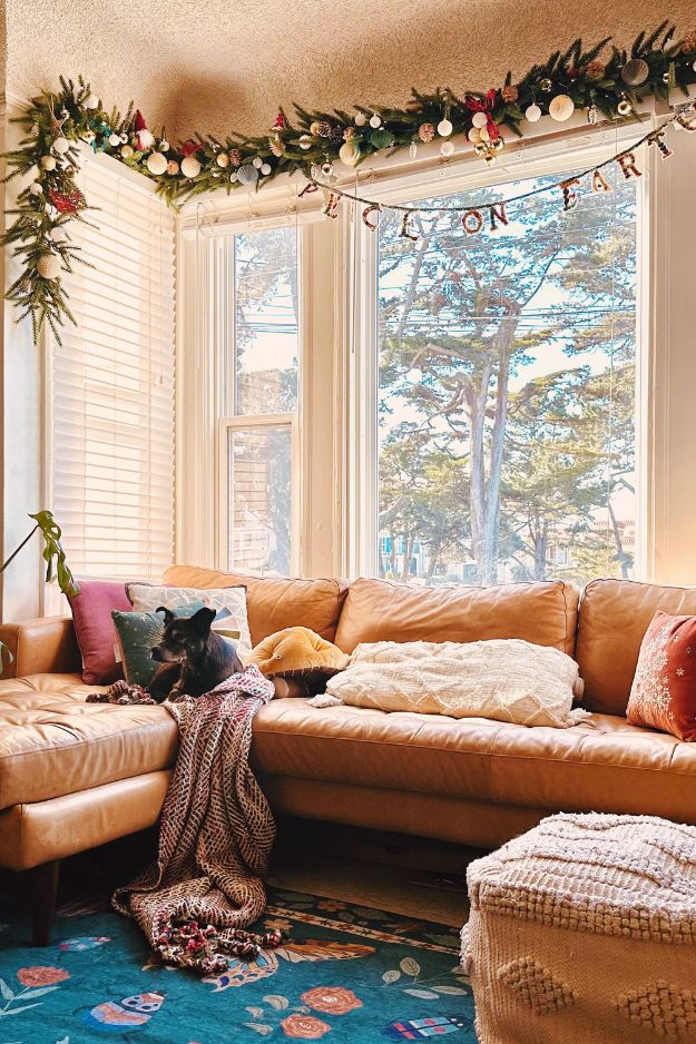 This living room by u/seoDenOsA feels like it was made for the cozy season. The way the garland frames those old casement windows gives the whole space a soft, storybook glow, and I’m a little envious of how much natural light they get with windows on two sides.