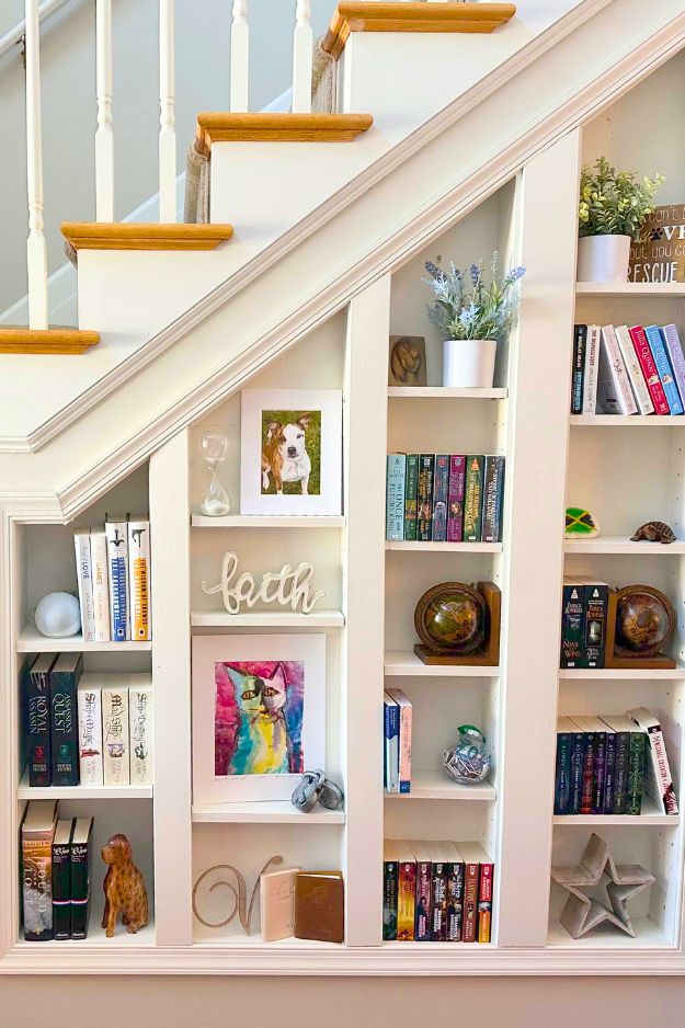 It’s one of those smart “dead space” upgrades where the staircase becomes functional storage without making the room feel cramped. The built-in look also makes it feel more architectural (like it was always meant to be there), which is exactly why under stairs bookshelves are so popular for small homes: you get storage without losing floor space. By Reddit