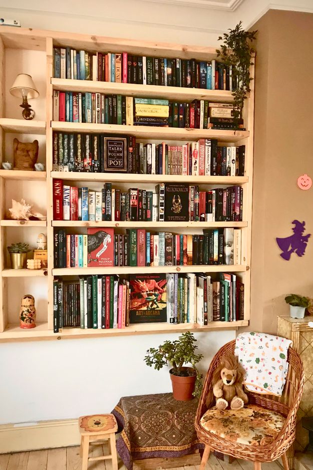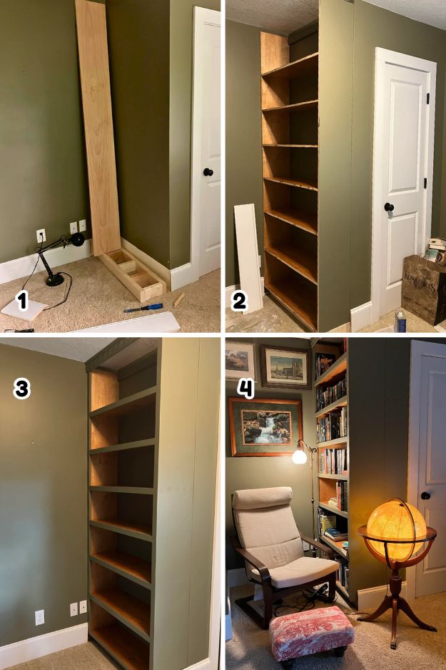 I also love the “real life” DIY vibe in the comments: learning on the job, wishing for a table saw, and still ending up with something cozy and usable. Extra points for the lamp and that satisfying new shelf space begging for more books.