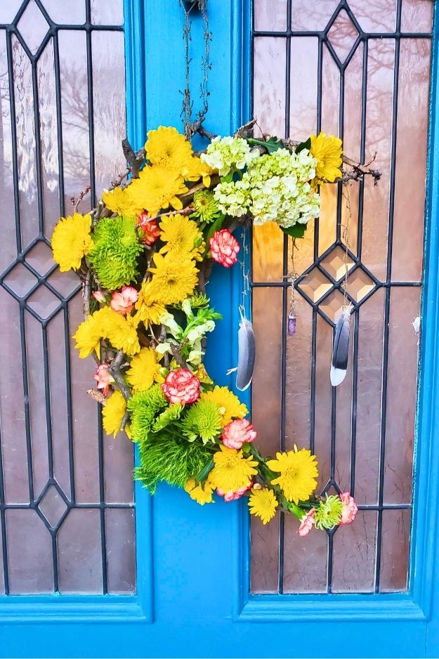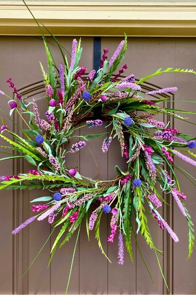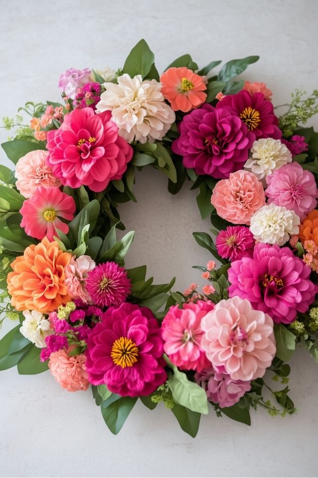 Ok, this wreath might actually be my favorite, it’s got that casual, slightly wild vibe that makes it feel alive. The colors are joyful but not too polished, like a garden that decided to throw its own little party. It’s not the overly perfect, Pinterest-style wreath, and that’s exactly what makes it so good. By bjobq6