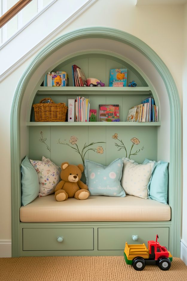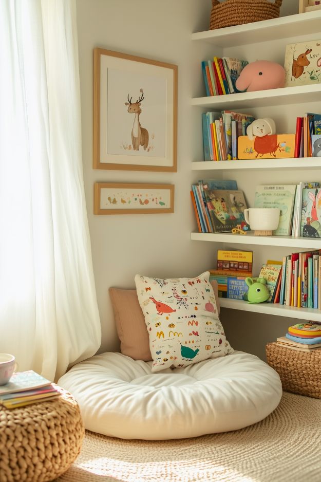 For kids, a reading nook by the window is pure magic. It helps keep the space bright and inviting during the day, which makes it way more likely they’ll actually curl up with their books instead of going on their Ipad.