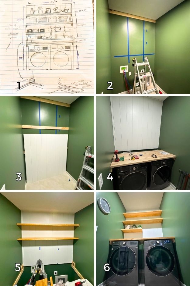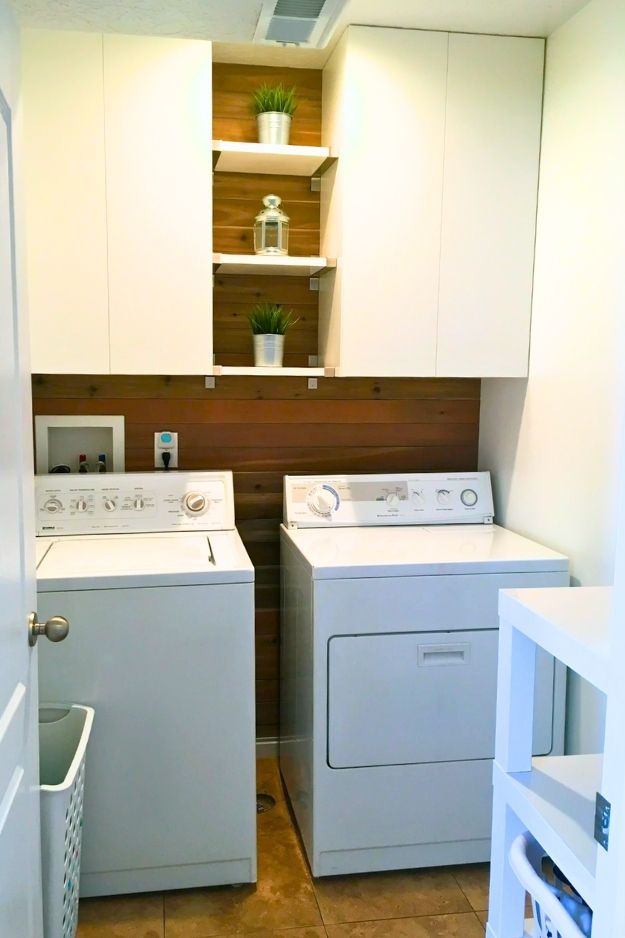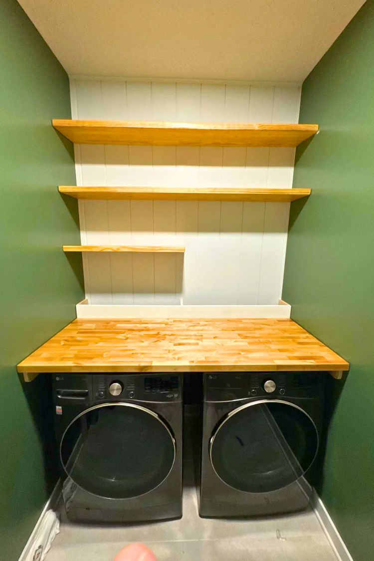 u/egibbys absolutely pulled a sneaky one here, because you scroll thinking it’s just “nice shelves, nice paint,” and then boom… the cedar wall shows up like a plot twist. It instantly warms the whole laundry room up and makes it feel less like a utility closet and more like a little spa corner you don’t mind standing in.