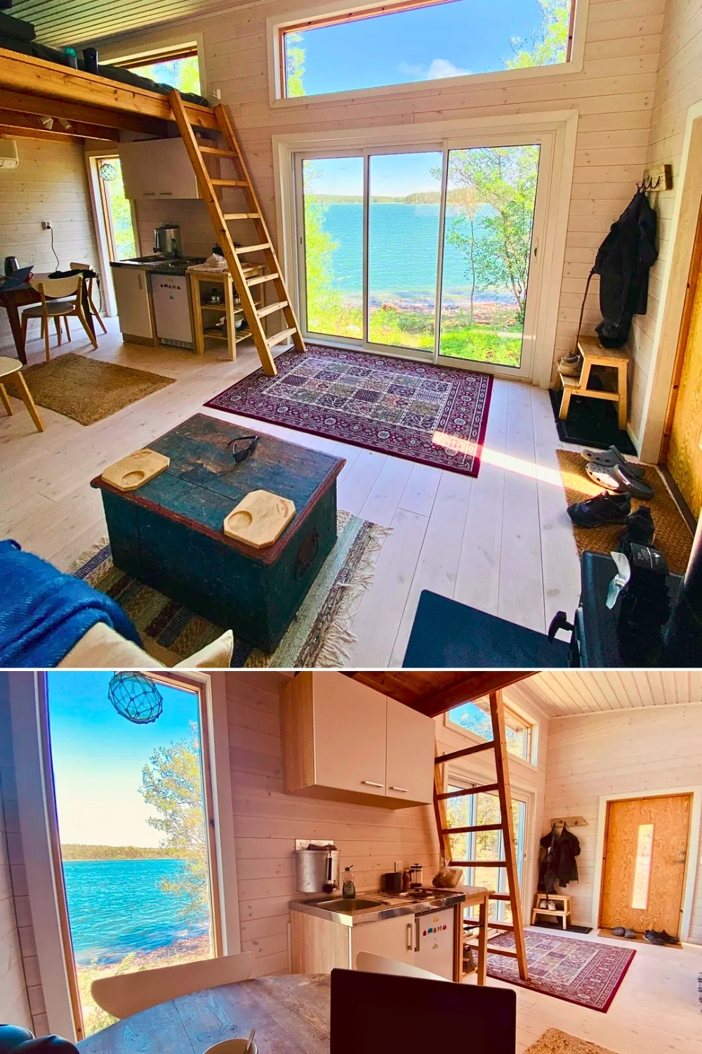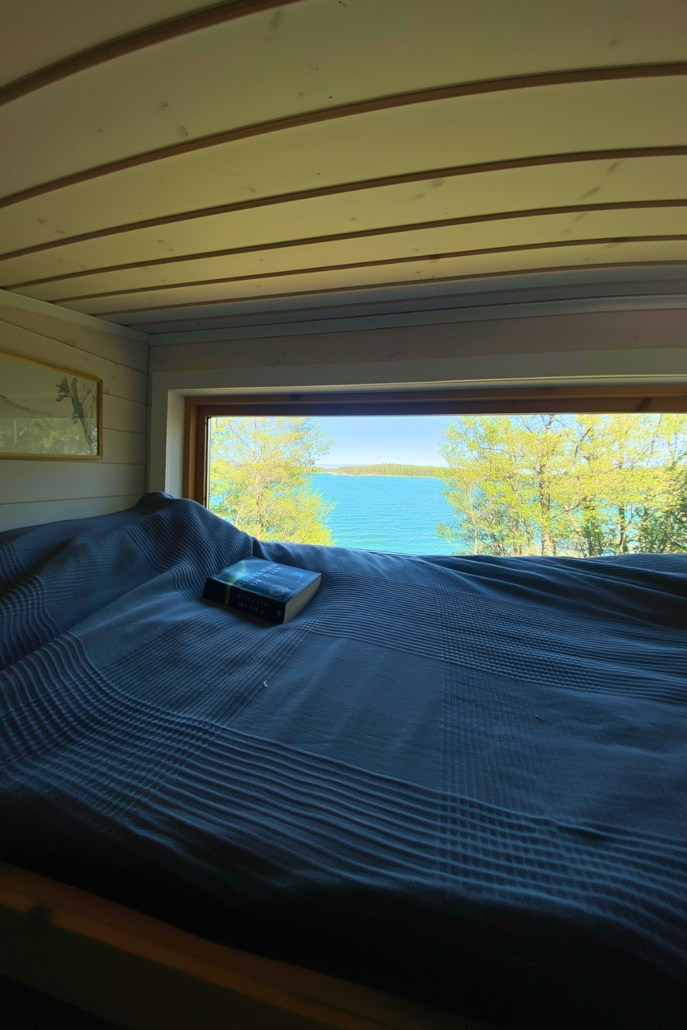 Similarly, this cozy loft bed and open interior by u/Signal-Appearance-88 work together to create a calm, uncluttered winter cabin atmosphere. The low sleeping nook feels safe and warm while the big windows pull in lake views and soft natural light. It’s a space that balances comfort and function perfectly – I’m not sure I’d get any work done here, or if I’d just stay in bed watching the forest and lake all day.
