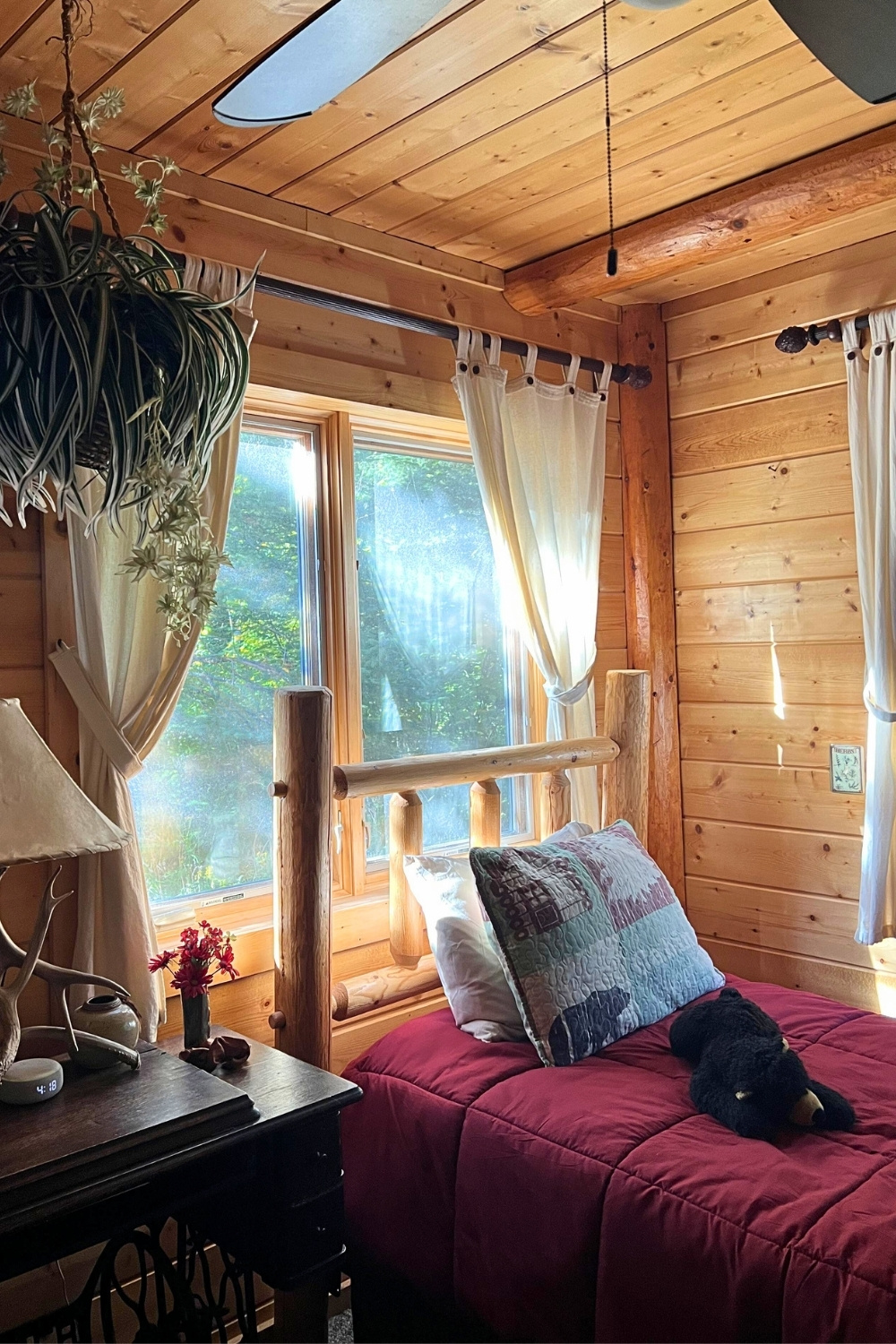 Then there’s this sweet cabin bedroom from u/Sea_Midnight1050 that radiates slow weekend comfort. The morning light on the soft curtains, the warm wooden walls, and their memory of drinking coffee in bed together make the whole space feel quietly romantic.