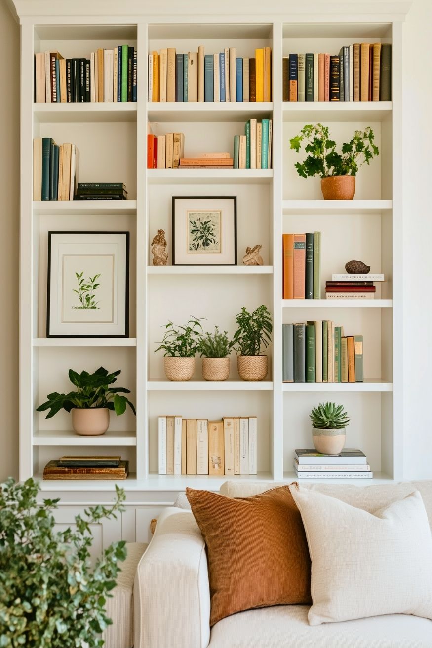 And this built-in bookshelf works as both storage and decor. Nothing feels crowded, yet it’s far from plain. It’s a great spring wall idea if you want something timeless and functional that still brings in that fresh, seasonal feeling without swapping everything out.