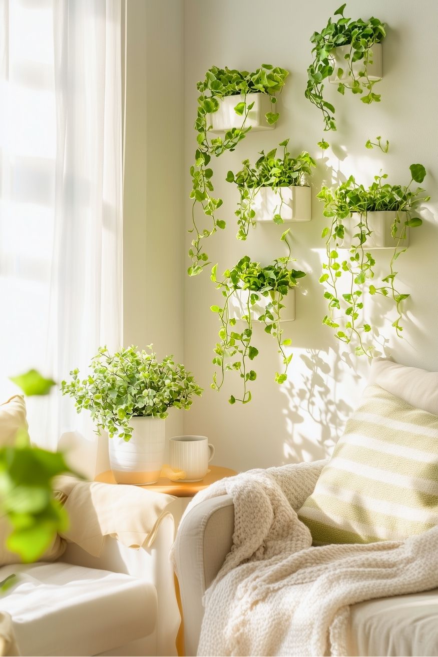 This idea is for people who want to have something new in their living space. The trailing plants bring just enough fresh, spring energy to the living space. This one is a great reminder that spring wall decor doesn’t always mean adding more things. Sometimes it’s just about letting greenery do the talking.