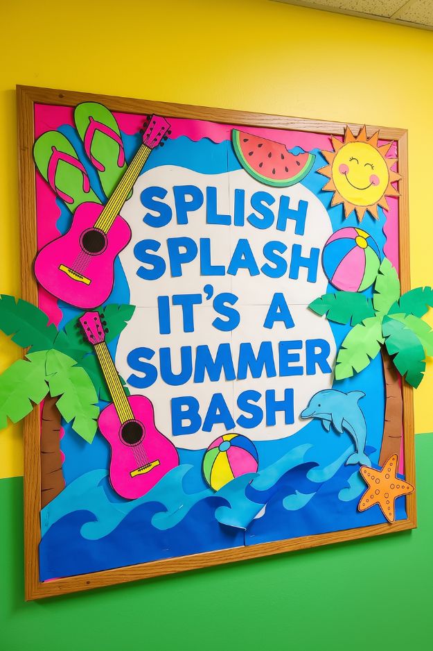 This board is a total tropical party in a frame. The guitars and the smiling sun create such a happy, musical vibe that I find totally infectious. I love the dolphin jumping over the waves; it’s such a fun, playful detail. I’d definitely add some real tropical flower leis draped over the corners of the frame to give it a little more 3D personality.