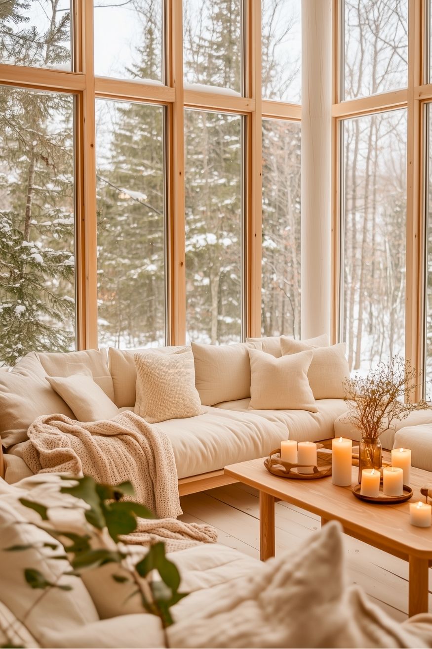 Here’s another decor idea that feels like a warm hug in winter. The oversized sectional wrapped in soft neutrals makes the whole space feel calm and generous. And it’s for sure a real star here.