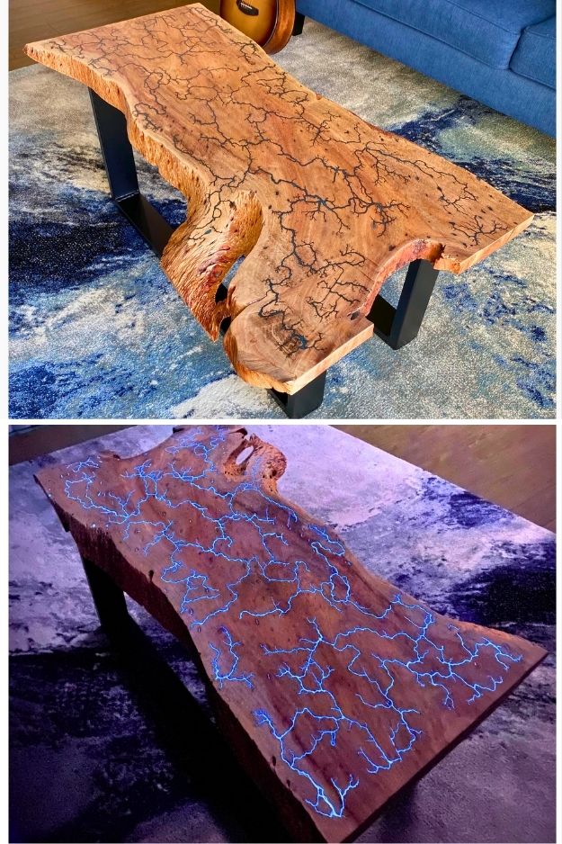 Alan314’s glowing coffee table feels like something straight out of a fantasy movie, the kind of piece that could light up on its own when danger’s near. It’s made using fractal wood burning, a technique where high-voltage electricity etches branching, lightning-like veins into the wood, then filled with epoxy mixed with glow pigment. It’s stunning, but also a little wild knowing how risky that process can be.