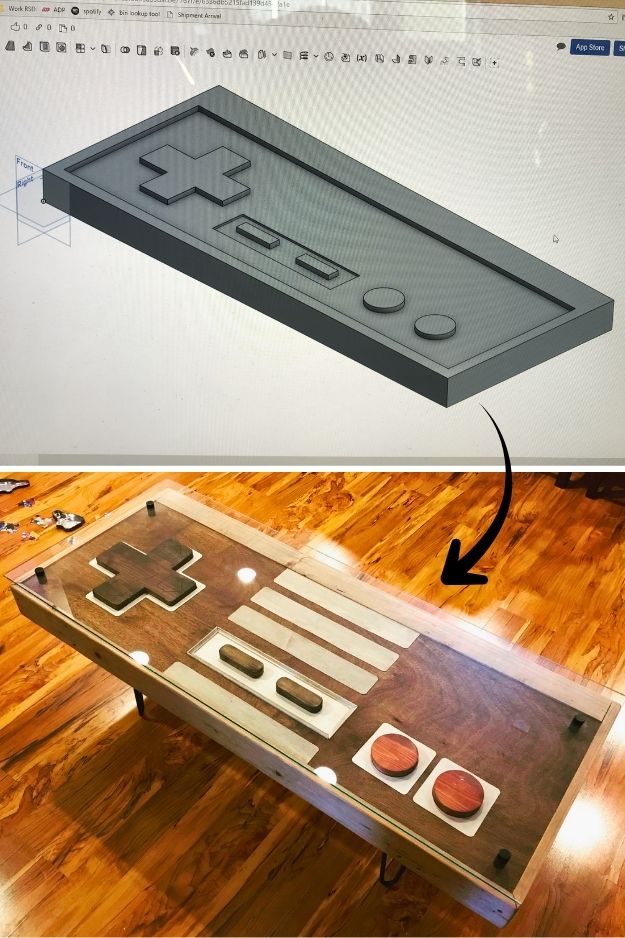 The NES controller coffee table by u/gregbo24 hits that perfect blend of geek nostalgia and genuine craftsmanship. Instead of using paint, he went with layered wood stains that give the buttons and frame a rich, mature look. What makes it even cooler is that he built it as a handmade Christmas gift, his first big woodworking project.