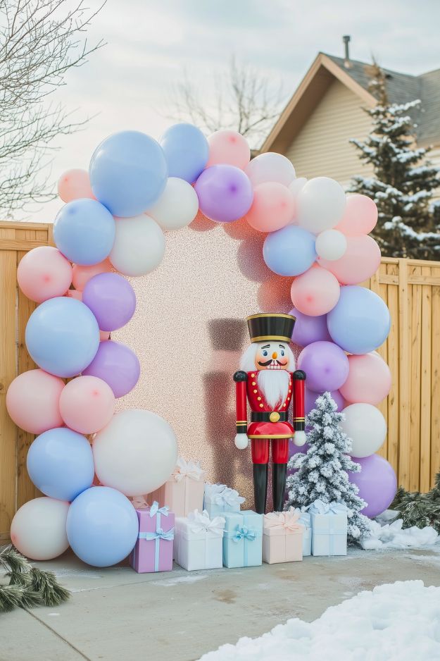 I’m lowkey obsessed with the pastel balloon arch. It feels way less serious than regular winter decor and honestly makes the whole setup feel happier. I’d 100% take photos here.