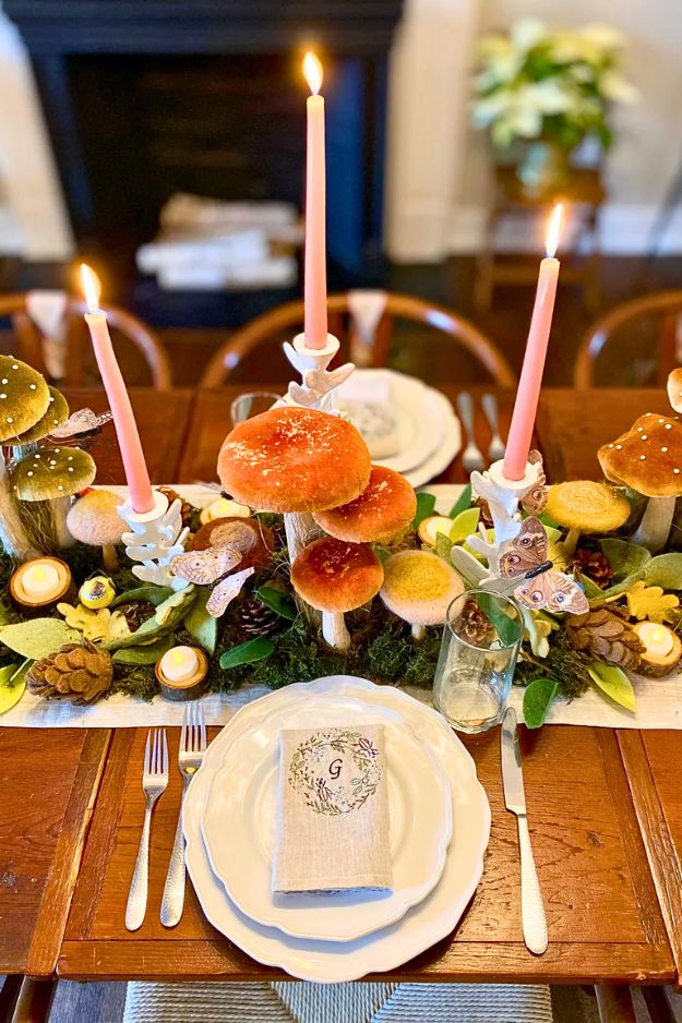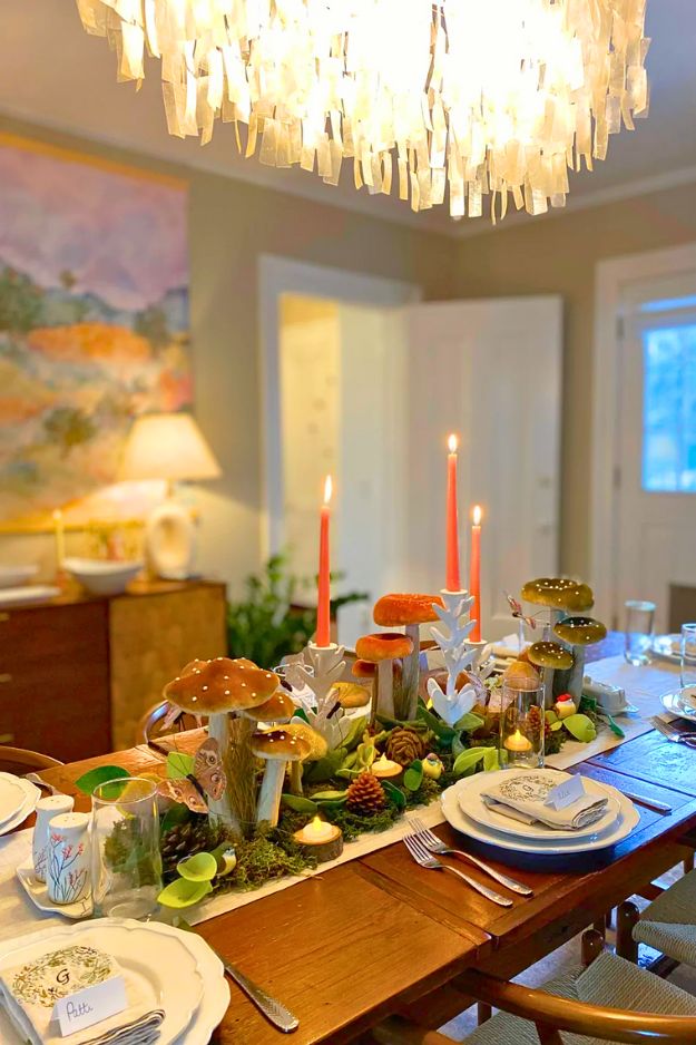 I love this centerpiece because it looks like someone scooped up a little patch of forest and dropped it right on the table.