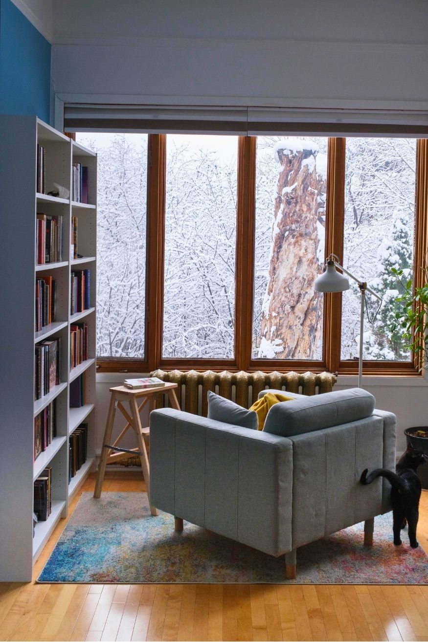 This nook by u/BiggiesAccountant hits me right in the winter-daydream feelings. I swear I could spend my whole day sitting on that big armchair and immerse myself in that window view.