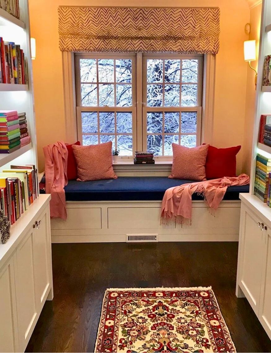 I really like the mood of this nook that I found on Reddit. It’s basically a giant pile of pillows and blankets wrapped around a winter view, and I love that it feels approachable instead of styled to death. I could imagine sinking into that fluffy blanket with a hot drink while the snow falls outside.