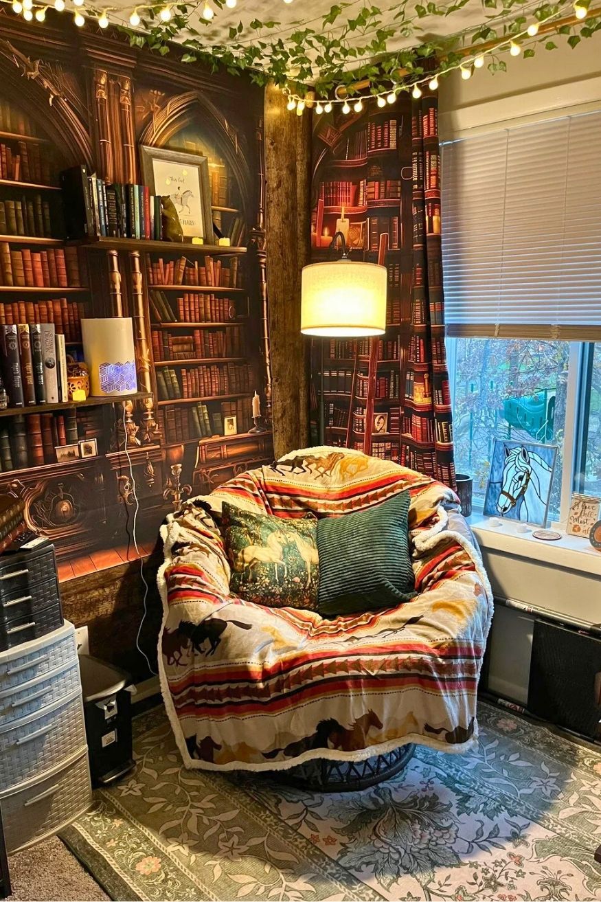 u/Smoolian’s nook had me fooled at first; I really thought I was looking at some old European library folded into a tiny room. Once I realized the “shelves” were wallpaper and curtains, it shifted from historic to cleverly resourceful, and honestly, that makes me like it more. Credit goes to.