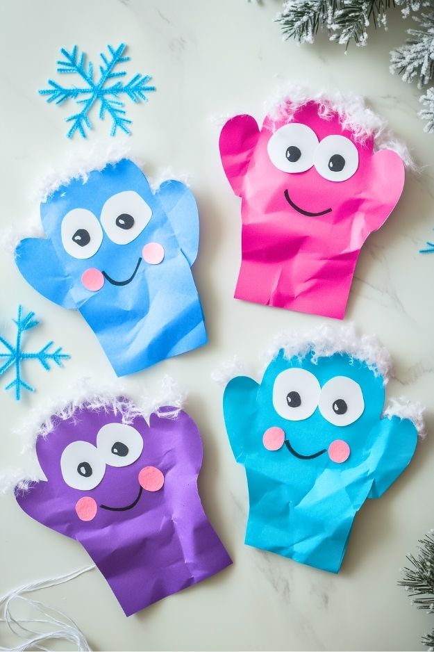 What I love about this little project is how it started as simple paper mittens and somehow became these goofy, wide-eyed “mitten people” with fluffy cuffs and big smiles. It feels exactly like the kind of winter craft kids come up with when they get carried away in the best way.