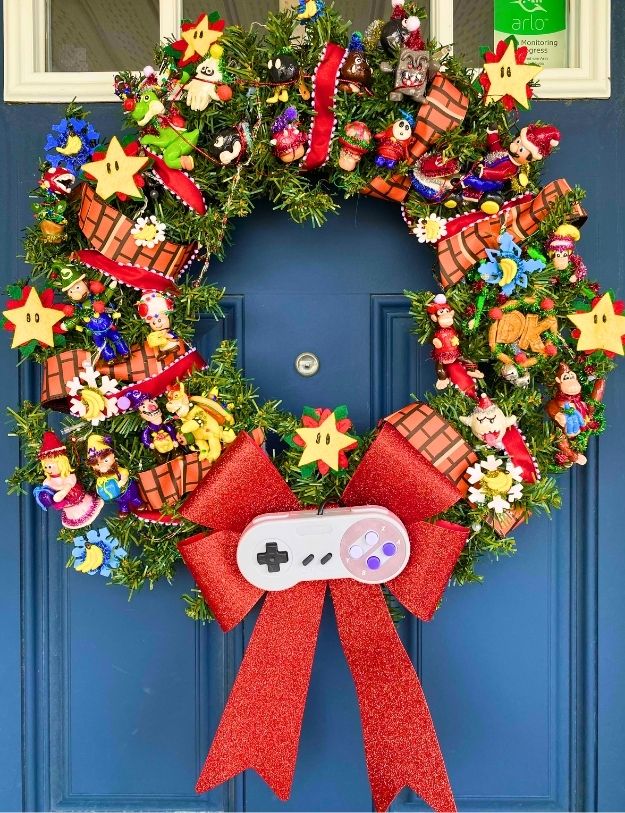u/Delicious_disasters’ Mario wreath cracked me up in the best way because it’s such a playful spin on Christmas crafting. Every little character was handmade from polymer clay, so the wreath ends up looking like a tiny Mario universe glued onto evergreen. And that SNES controller bow? Absolute nostalgia bait. It’s not the kind of project kids can fully recreate, but it is the kind of thing they love to look at.