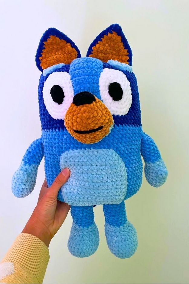 This crocheted Bluey from u/harmonystar19 isn’t the kind of craft kids can whip up on their own, but it’s absolutely the kind they’d lose their minds over if someone made it for them. The chunky yarn, soft colors, and those big “I see everything” Bluey eyes make it feel extra huggable.