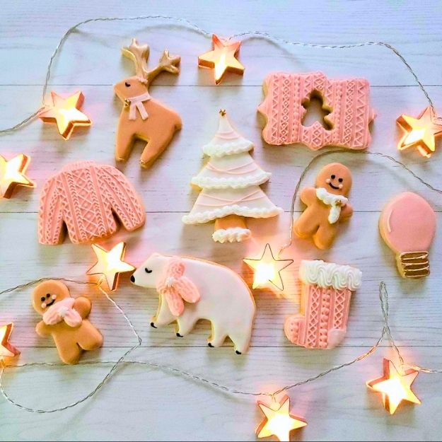 u/SweetHeidiJo’s post showed me how many fun directions kids can take their Christmas cookies. Her daughter went for soft pink sweaters, cable-knit patterns, cute gingerbread faces, and even a little polar bear with tiny toes.