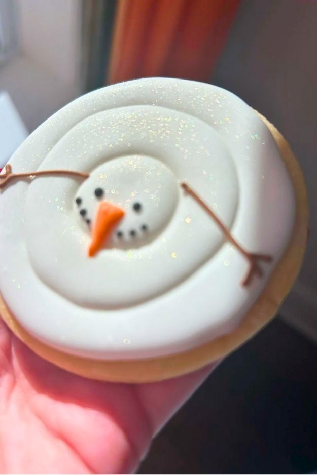Seeing this post I had that moment of “okay… kids probably can’t pull this off exactly,” because her mom’s piping is unbelievably steady. She’s a retired culinary arts teacher, and it shows in every tiny button and perfect outline. But the idea itself, a simple round cookie dressed up as a snowman, is still something kids can take inspiration from.
