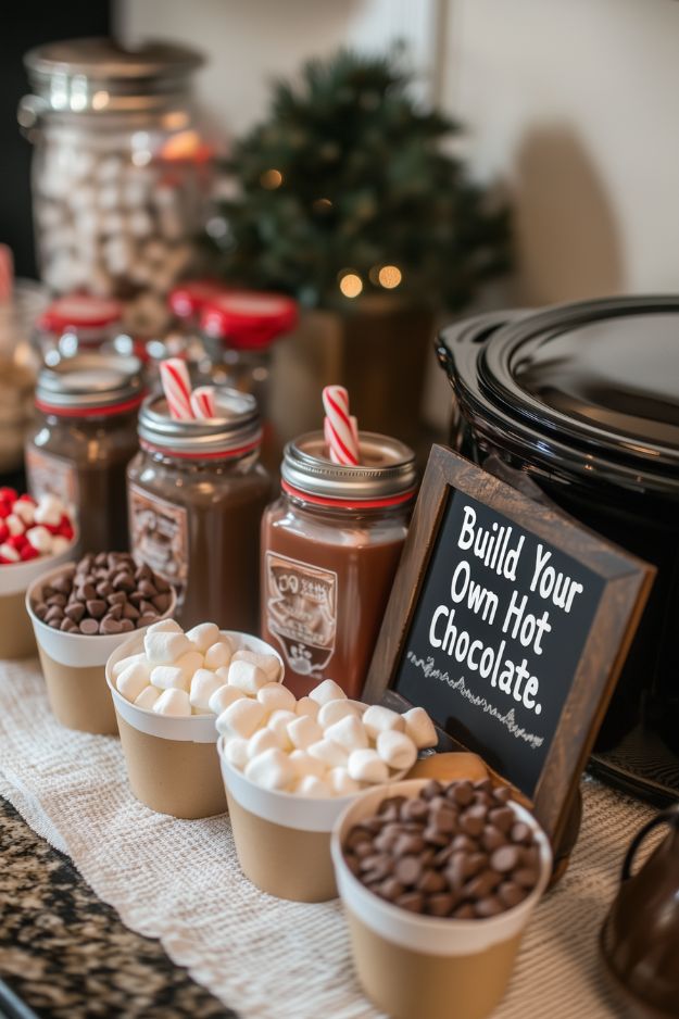 There’s something about a hot chocolate bar that instantly makes a winter baby shower feel warmer, and this one is so simple but so inviting. The whole setup feels like the coziest little break from the cold.